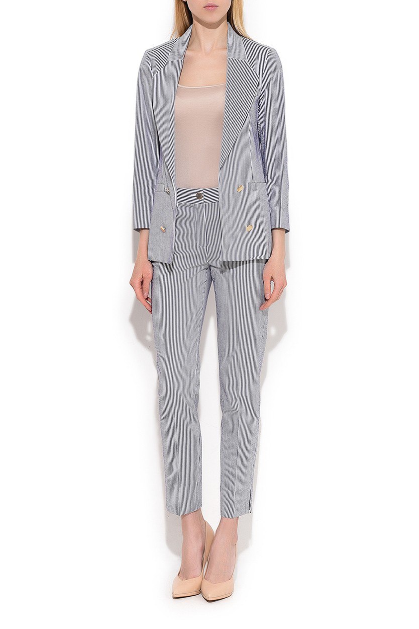 При выборе «полосатых» вещей не стоит зацикливаться на привычных черно-белых цветовых решениях. Почему бы не выбрать платье в контрастную полоску? В модели от Surri полоска постепенно расширяется к низу изделия и перемежается с другими цветами.4. Двубортный жакет HongoВ новом сезоне дизайнеры переосмыслили традиционную полоску, привнеся новаторские решения. Этим летом она будет максимально далека от первого образа французской матроски. На волне популярности узкая полоска.