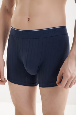 Мужские трусы классические Calida (Калида) из тонкого хлопкового трикотажа с жаккардовой полоской. Особенности: средняя посадка, передняя часть на подкладке, широкая пришивная резинка с вышитым логотипом и полоской на поясе. Уход: деликатная стирка