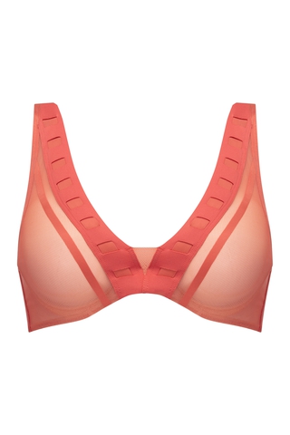Однотонная модель бюстгальтера-балконет персикового цвета с плотной чашкой бандо оригинального качества Chantal Thomass