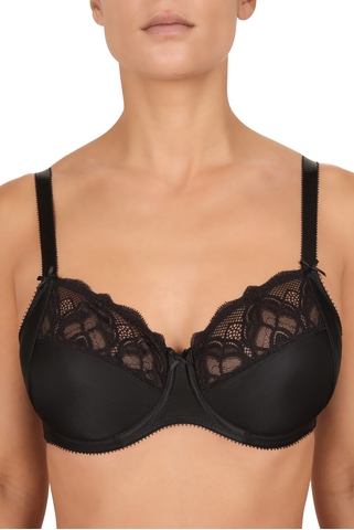 Бюстгальтер без косточек Felina из шелковистой ткани оттенка "сирень". Особенности: мягкая чашка без косточек, отделка декольте ажурным кружевом, плоские регулируемые бретели, боковые поддерживающие косточки, спинка из плотной микрофибры.