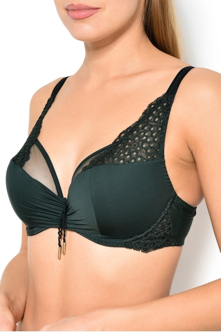Бюстгальтер Maison Lejaby (Мейсон Лежаби), с мягкой чашкой, из полиамида с небольшим добавлением эластана. Особенности: чашка из прозрачного тюля с аппликацией из ажурного кружева с узором "в дырочку", регулируемые бретели, декоративный шнурок по центру декольте, комфортный пояс из гладкого однотонного трикотажа с застежкой на два крючка в четыре позиции.