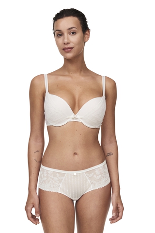 Красивый женский бюстгальтер ванильного цвета от бренда Chantelle
