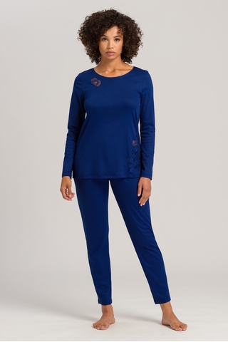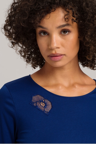 Женская сорочка синего цвета с вышивкой от бренда Hanro