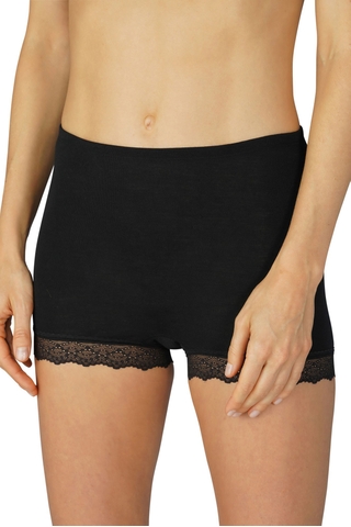 Женский домашний топ Mey (Мей) выполнен из натуральной шерсти с добавлением шелка. Особенности: тонкий и полупрозрачный однотонный трикотаж, облегающий фигуру силуэт, глубокий V-образный вырез с отделкой изящным кружевом с фигурным краем, глубокая пройма без рукава, длина классическая.