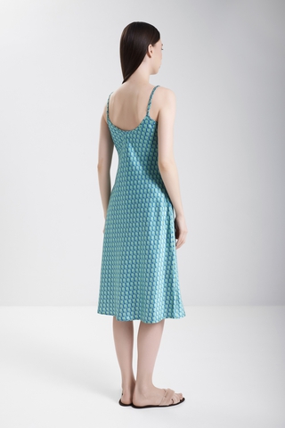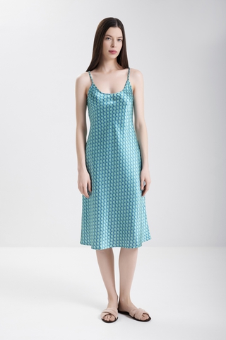 Женская пижама Karma on the Rocks из натурального шёлка сочетает лёгкость и роскошь. Голубовато-зелёный оттенок с японским облачным мотивом придаёт утончённости, а классический крой с пуговицами и мягкими брюками обеспечивает абсолютный комфорт для отдыха дома.
