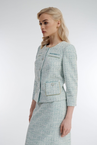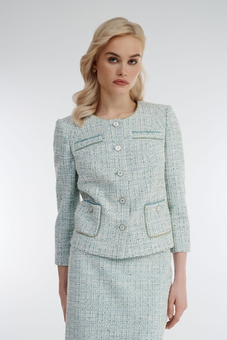 - Состав: Основной: Вискоза 57%, Полиэстер 20%, Металл 10%, Хлопок 6%, Акрил 5%, Эластан 2%; Подкладка: Вискоза 96%, Эластан 4%