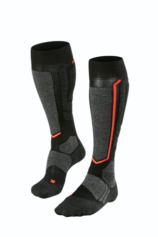 Компрессионные носки для профессиональных спортсменов от Falke Sport. Инновационный текстиль с добавлением шерстяного волокна обеспечивает дополнительную защиту в области голени и максимальную терморегуляцию.
